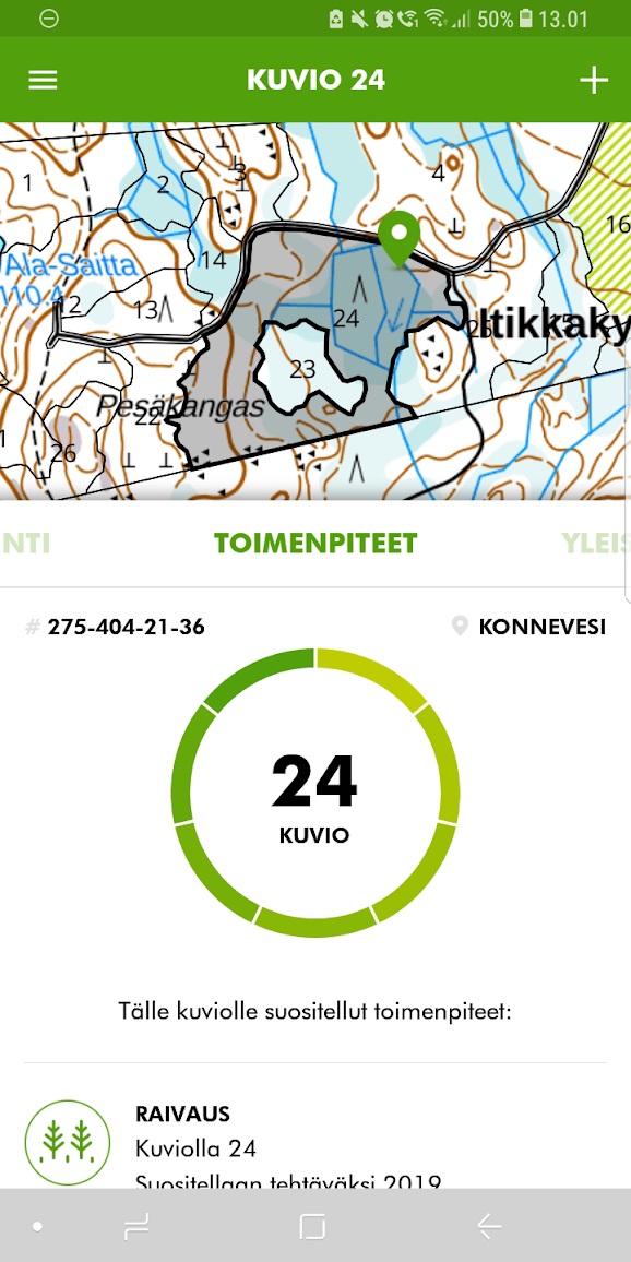 The application offers an overview of the user's forest and its value in a heartbeat. All the user needs to do is to enter the ID number of their property and the built-in analysis tool handles the rest. The app offers open-data based information on the distribution of wood species as well as their age, and an estimate of the monetary value of the forest.