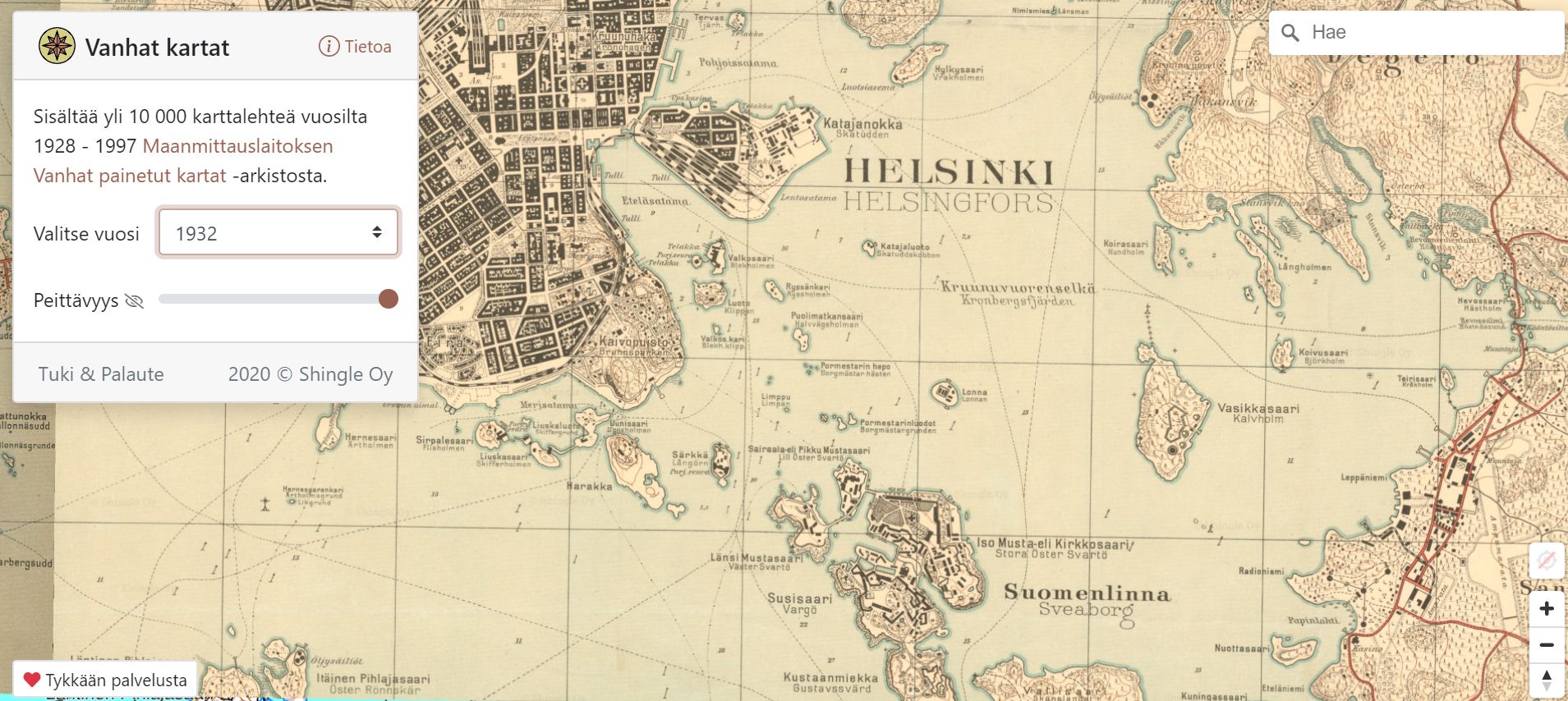 How did your neighbourhood look decades ago? To find out, you don't need to look for paper maps anymore because from Vanhatkartat.fi you can find old maps in digital form. You can compare old maps to the current map to see how your neighbourhood has developed over the years.